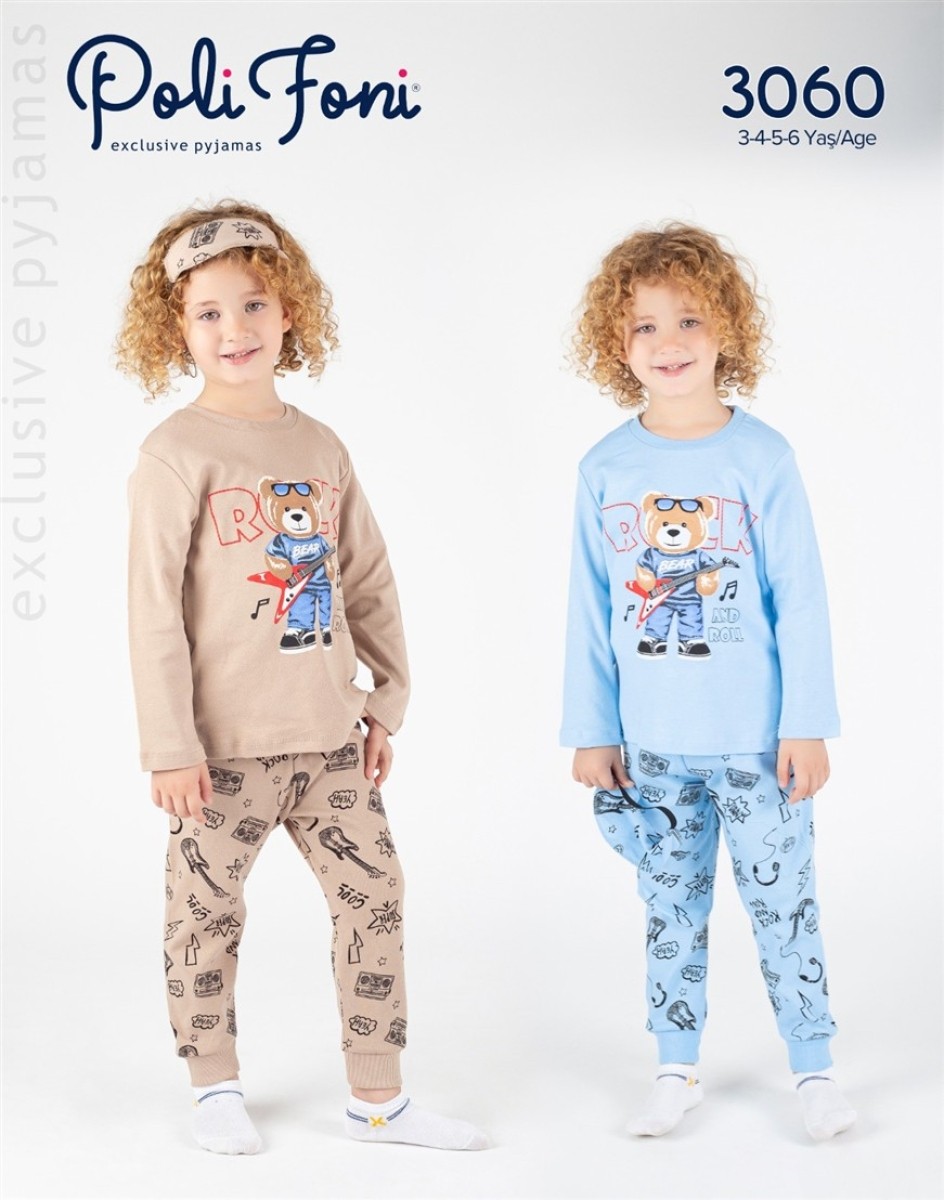 3/6 YAŞ 3060-GİTARLI AYICIK 4LÜ SERİ PIJAMA TAKIM