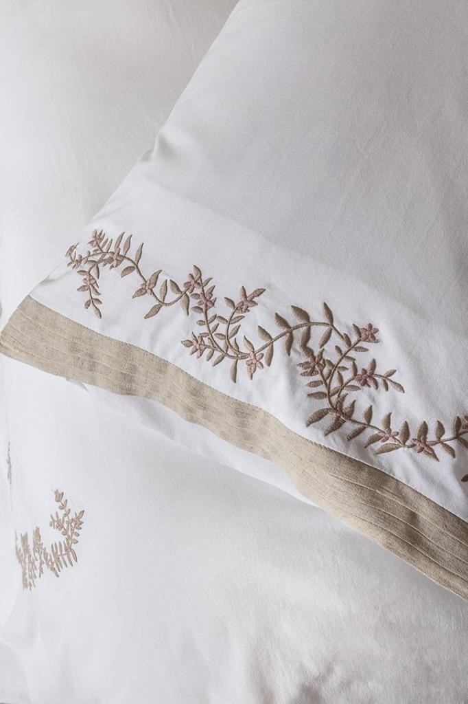- Nakış Detayı: Yastık kılıflarından 2 tanesinde keten üzerinde zarif, doğal desenli nakış detayları
