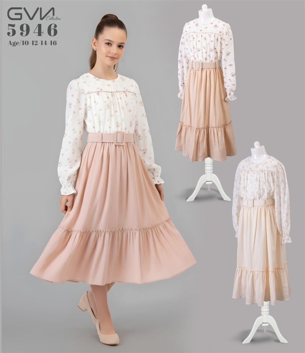 10/16 YAŞ-5946-KEMERLİ ELBİSE BÜYÜK