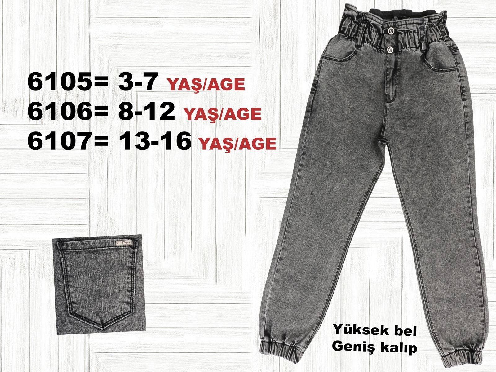 13/16 YAŞ 6107 GENİŞ KALIP BEL PAÇA LASTİKLİ KIZ KOT PANTOLON