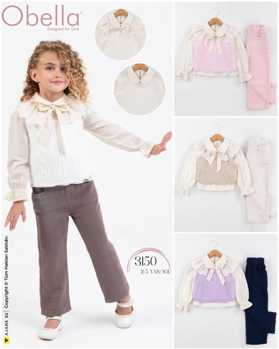 2/5 YAŞ 3150-TRİKO YELEKLİ ÜÇLÜ KIZ TAKIM