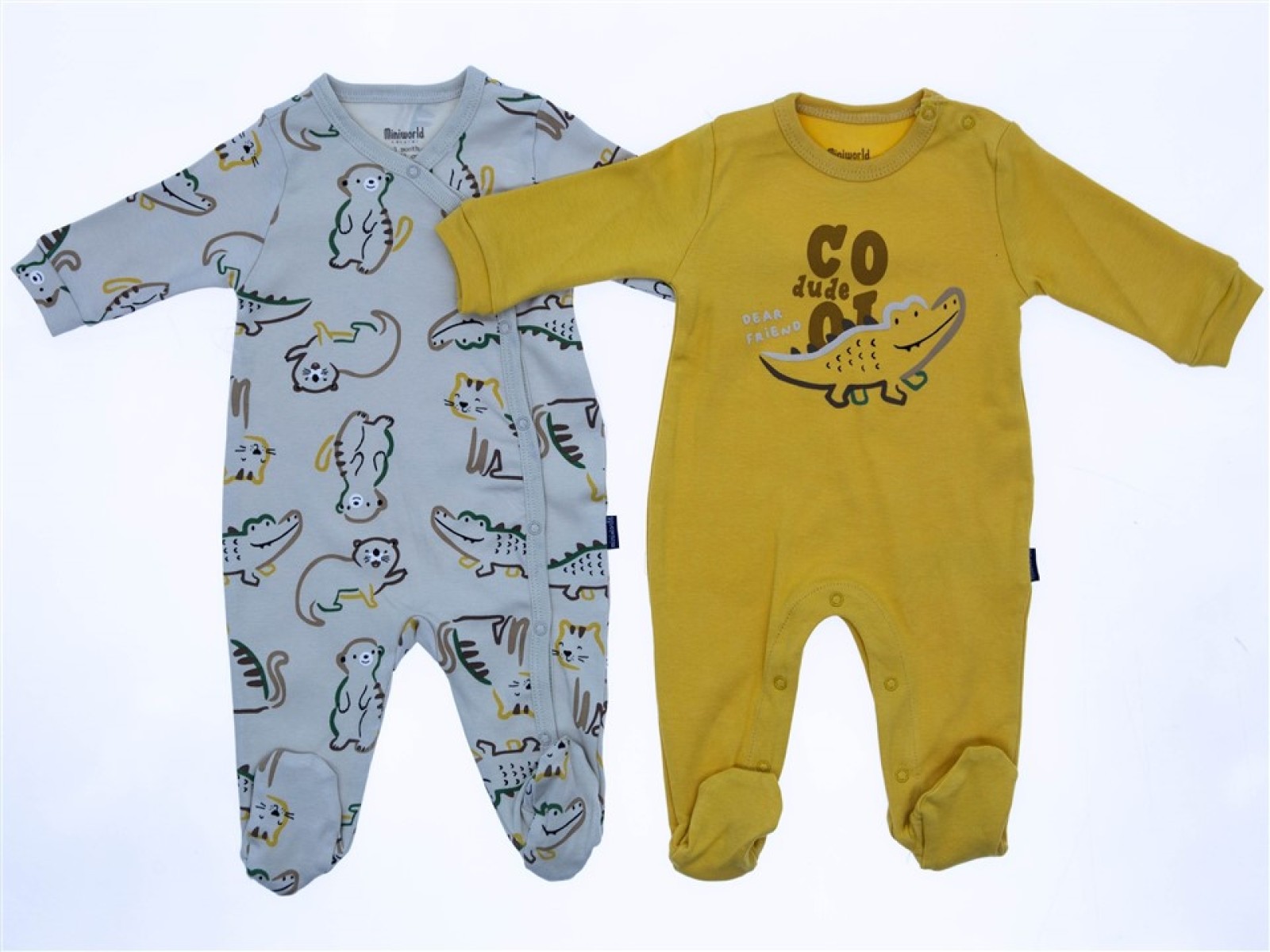 3/6 AY 18501 Erkek Renkli Hayvanlar 2 Beden 2'in 1 Pack Patikli Tulum