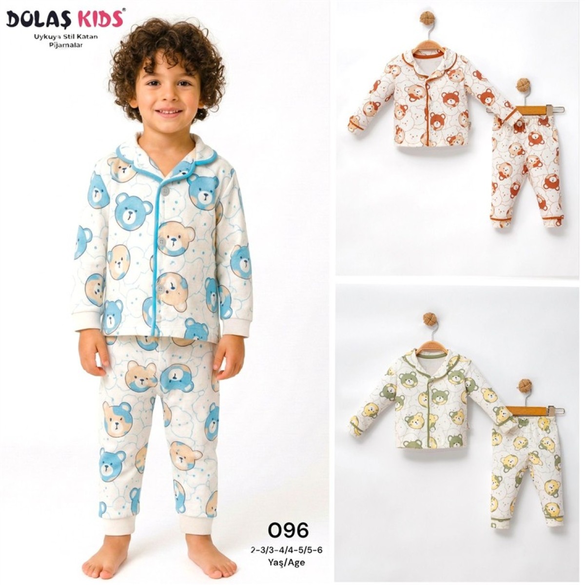 3/6 YAŞ-096-RENKLİ AYICIK BASKILI 3-6 YAŞ PİJAMA TAKIM