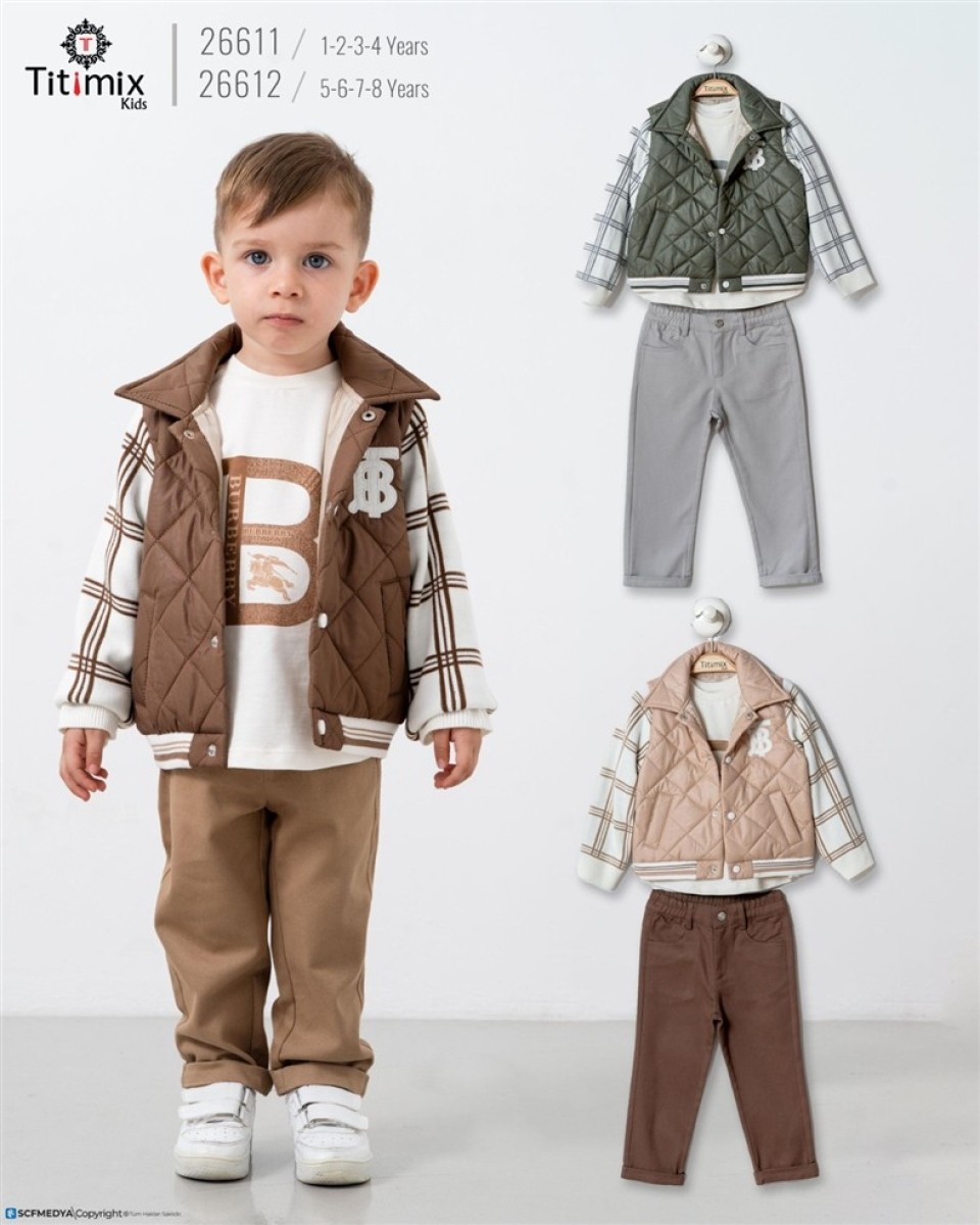 5/8 YAŞ-26612-26612 5/8YAŞ BURBERRY NAKIŞLI CEKET ÜÇLÜ TAKIM