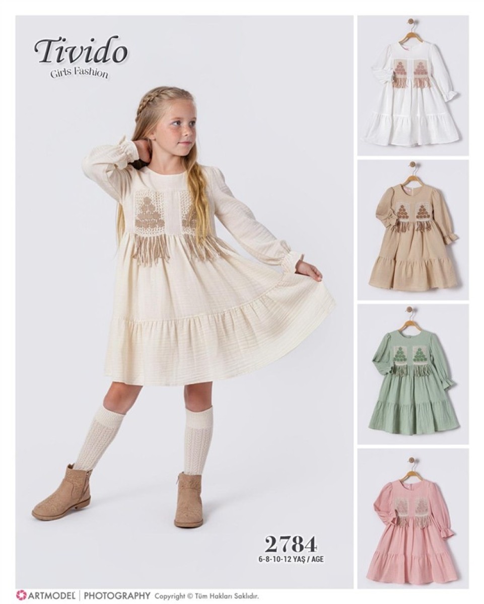 6/12 YAŞ-2784-Kuşaklı Elbise
