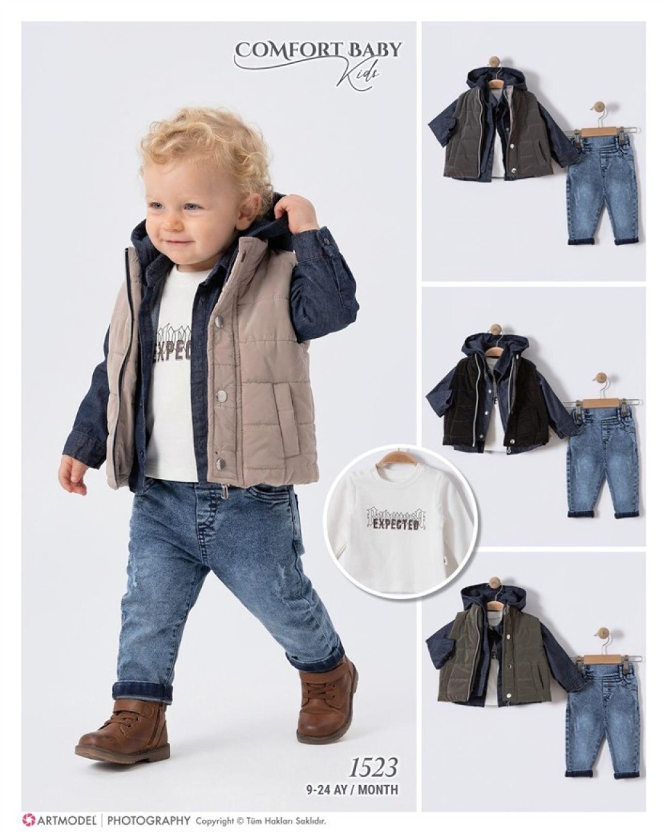 9/24 AY-01523-KAPÜŞONLU YELEKLİ KOT GÖMLEKLİ DÖRTLÜ ERKEK TAKIM
