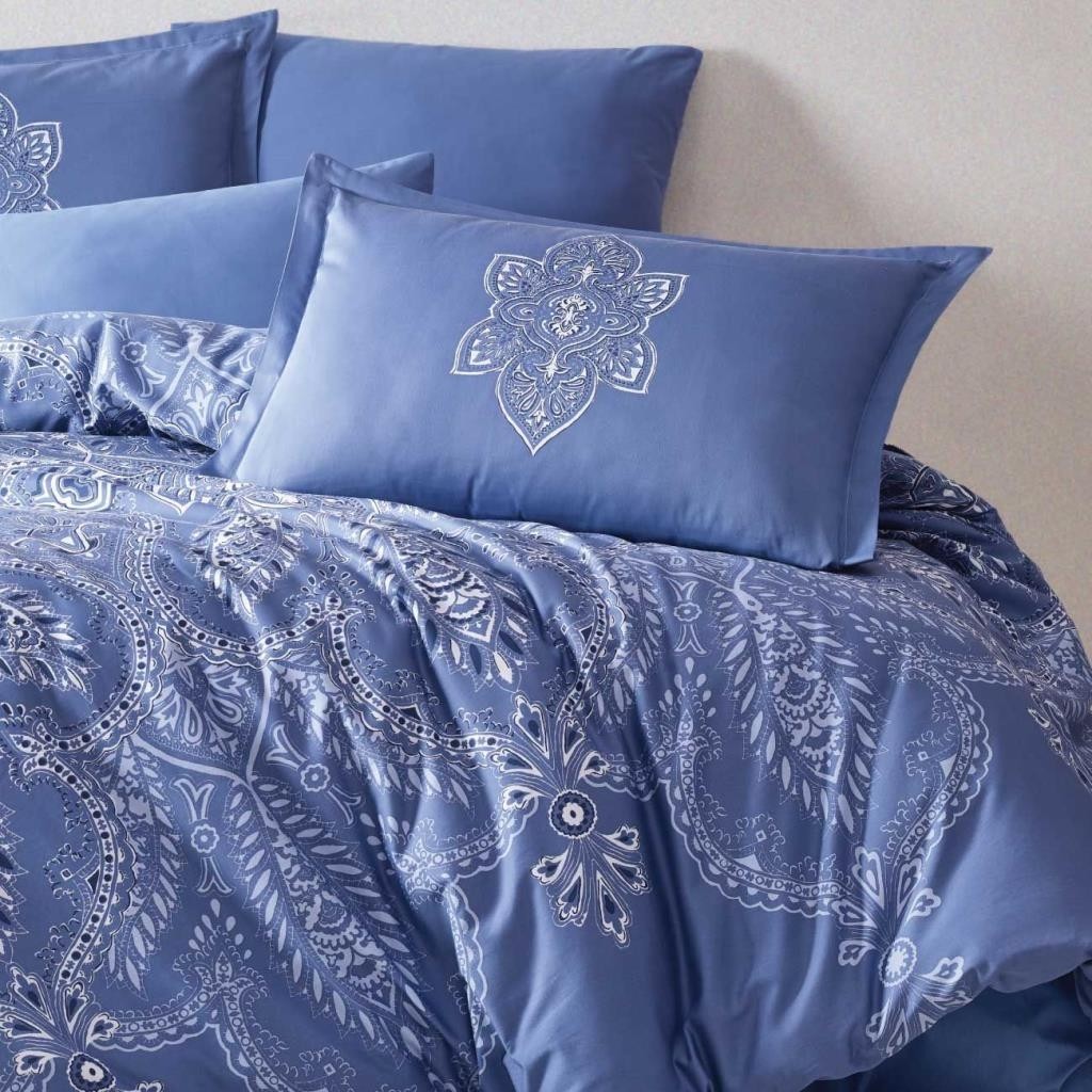 Clasy Pamuk Saten Çift Kişilik Nevresim Takımı Rovi v1 Mavi